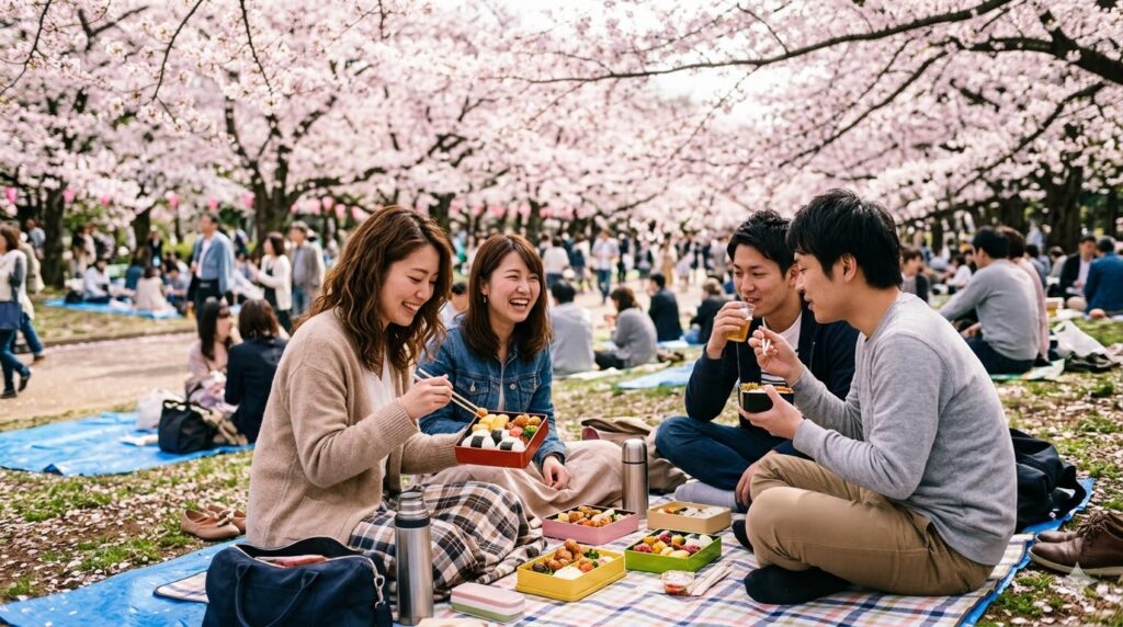 Com o tempo, o costume se popularizou e hoje qualquer pessoa pode participar. Durante o Hanami, amigos, colegas de trabalho e familiares se reúnem em parques para fazer piqueniques, tirar fotos e simplesmente aproveitar o momento.